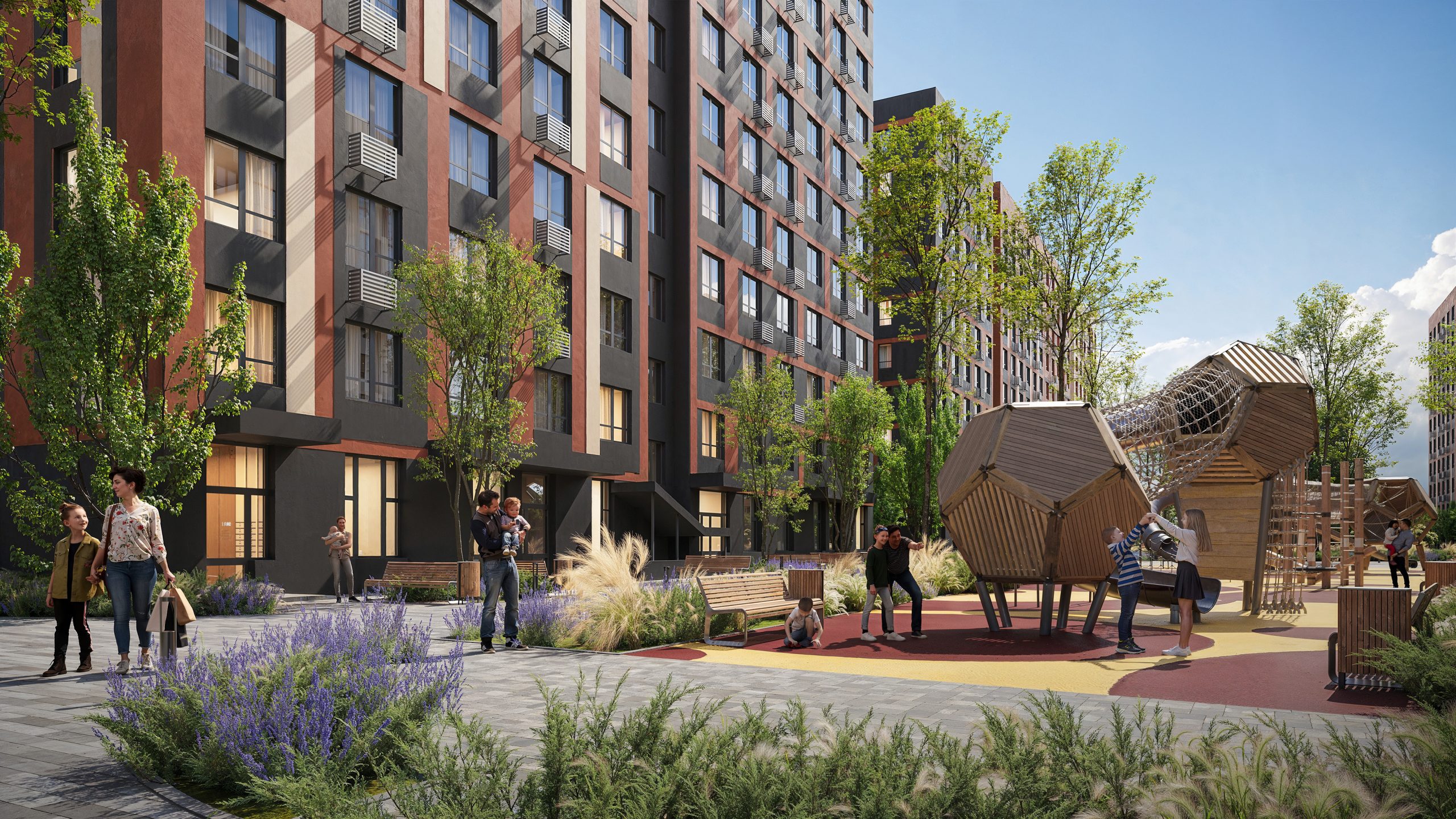 Загалом в пішій доступності від комплексу та на його території буде знаходитися все, що потрібне для життя — для закупів великий й всіма улюблений супермаркет «Сільпо», для душі та тіла спортивні клуби та зали, для навчання й розвитку заклади освіти. Все, щоб родини могли жити повноцінним життям, не залишаючи меж комплексу. Простір буде повністю інклюзивним — без бордюрів, проте з широкими дверними отворами, пандусами тощо. Ми робимо його безпечним й наповненим змістом, щоб життя у комплексі було по-справжньому щасливим для кожного.