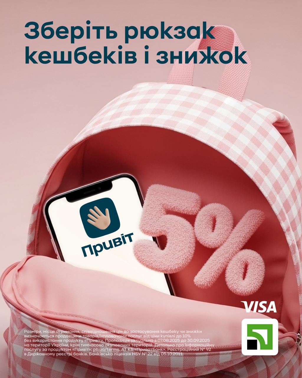 Усі ці «рюкзаки кешбеків» доступні для власників звичайних та преміальних карток Visa від ПриватБанку. Просто не забувайте головне правило: натиснути на долоньку «Привіту» у «Приват24», перевірити нові пропозиції, активувати свої персональні кешбеки та знижки і розраховуватись карткою Visa під час купівлі.