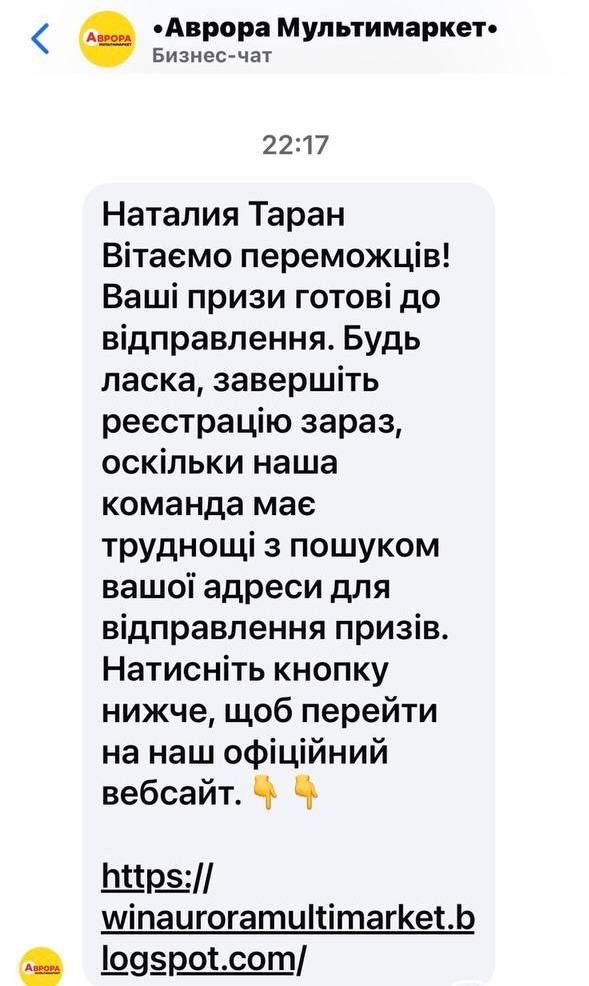 «Випадки використання назви нашого брендушахраями трапляються постійно. Найчастіше інтенсивність таких повідомлень зростає саме перед святами. Шахраї свідомо обирають час, коли бренди традиційно проводять акції та розіграші, щоб їхні фейкові пропозиції виглядали правдоподібніше», – коментує Катерина Селезень, керівниця відділу стратегічних комунікацій мережі «Аврора».