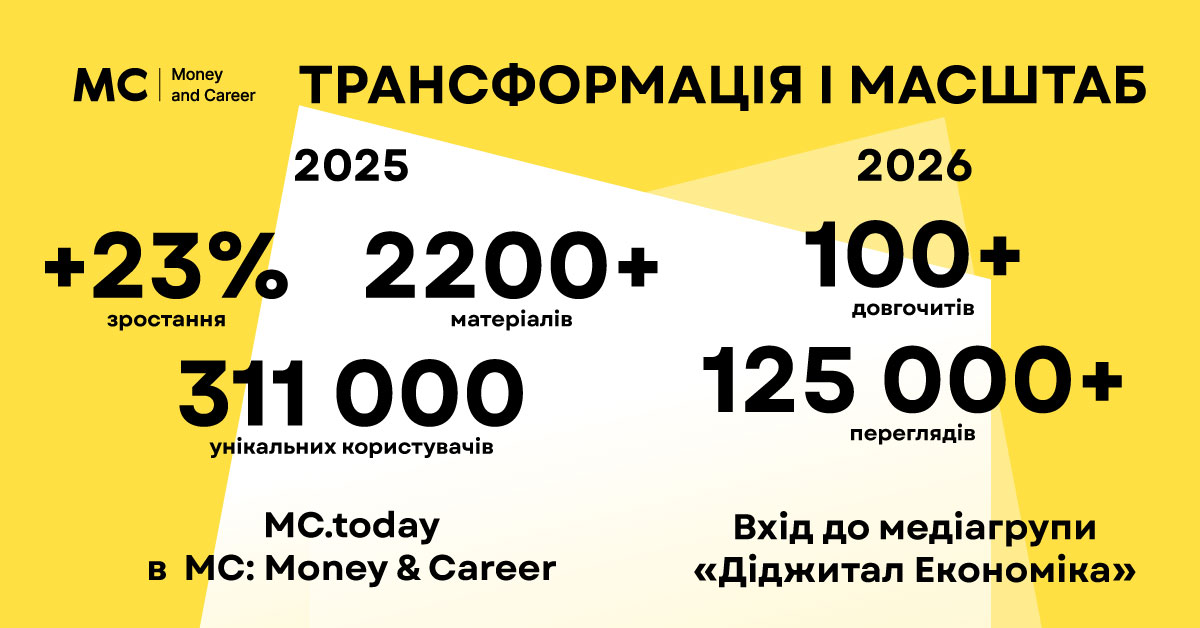 Початок 2026-го став для MC: Money & Career стартом для важливих змін. Наше видання разом з ITC.ua та Highload увійшли до медіагрупи «Діджитал Економіка», приєднавшись до The Page та SPEKA. Завітайте до колег – вони теж щодня готують для вас багато корисних і цікавих матеріалів. Для нас об’єднання відкриває нові горизонти: попереду ще більше ідей, досвіду та щирого бажання бути корисними кожного дня.